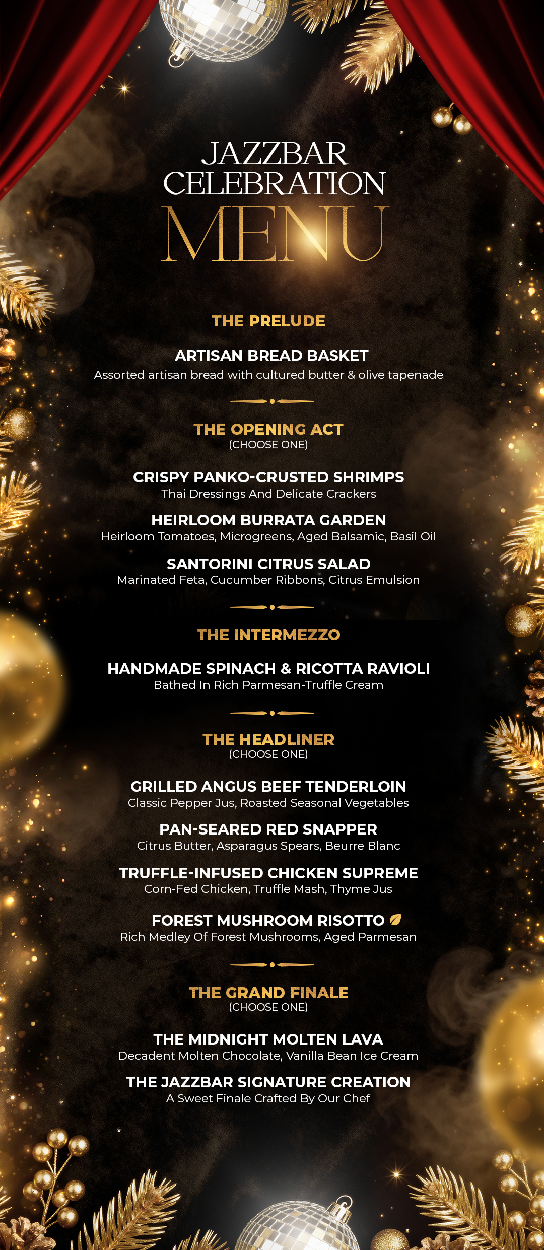 - Four-course chef-curated celebration menu